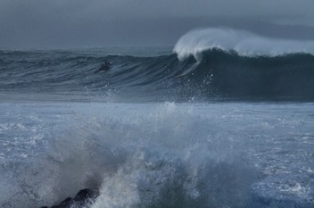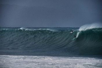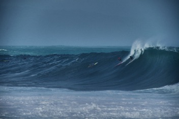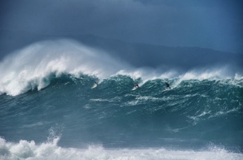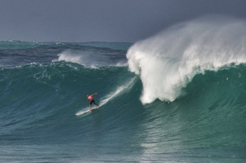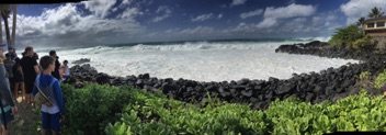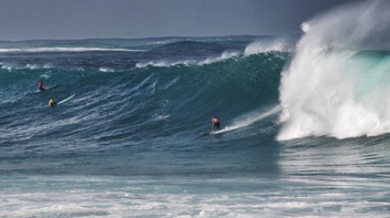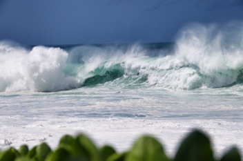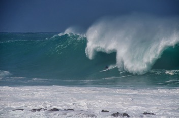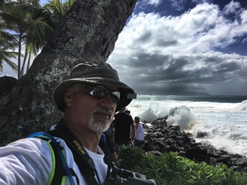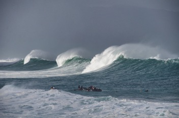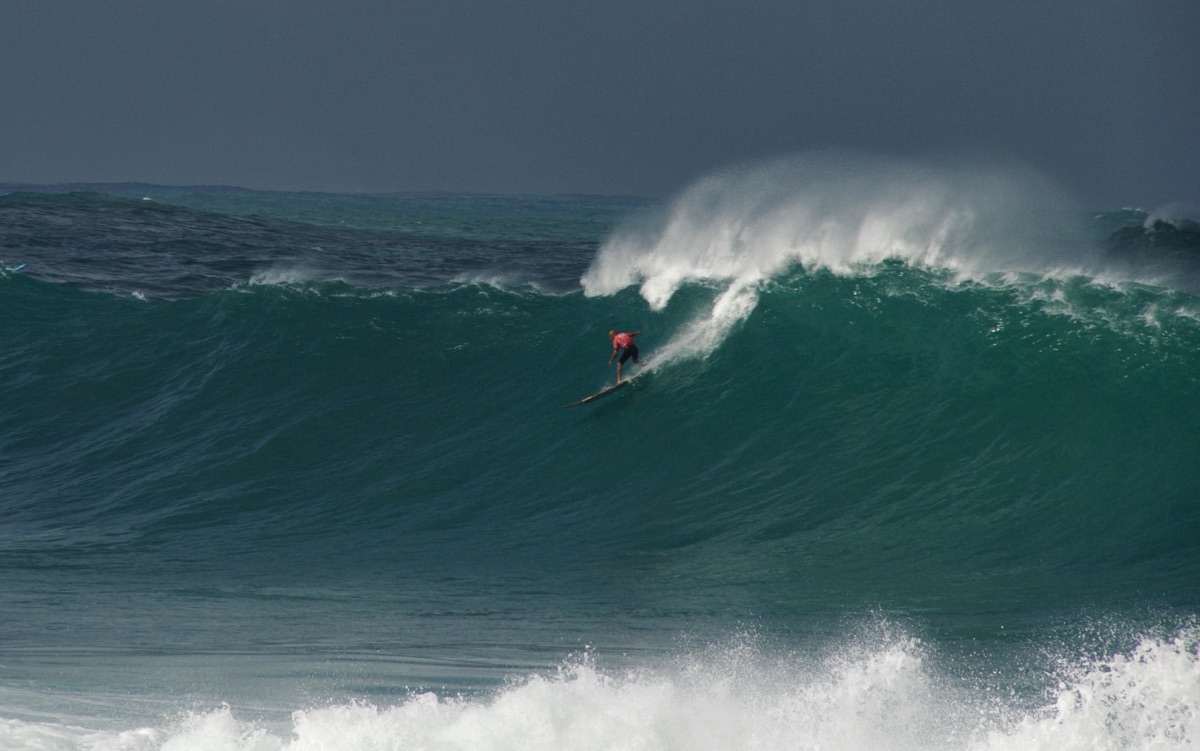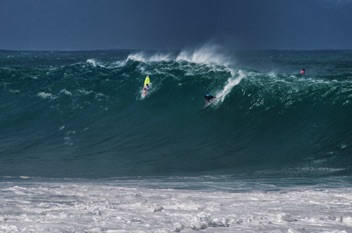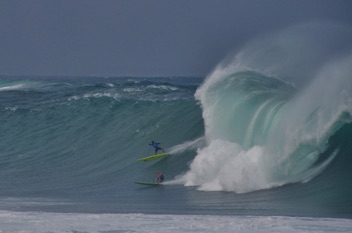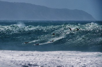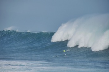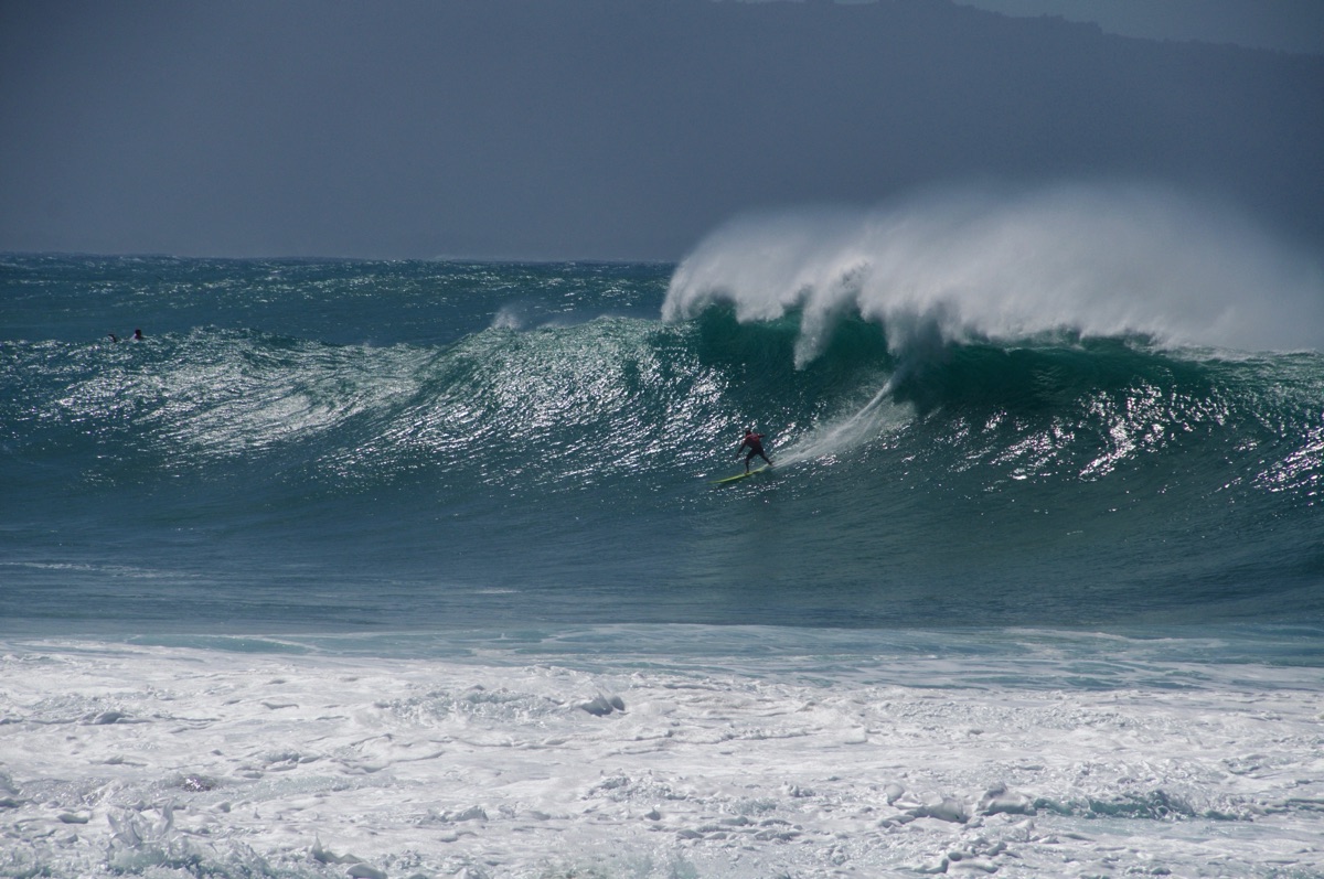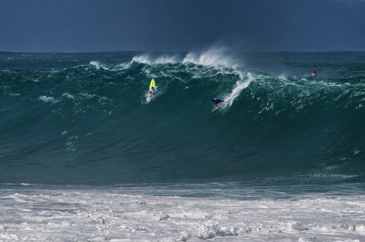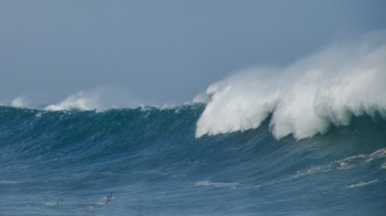 The deck was crowded so I grabbed me a coconut tree to protect me from the sun and found myself at the ocean's edge with a spectacular view of the line up. For 8 hours I screamed and yelled along with everybody else when anybody caught a wave or a monster set would come it. It was chicken skin folks. In my 64 years, I've never witness anything like it. The photos don't do it justice. Finally the sun came out and I got better shots. I don't have a surf lens so I didn't get close ups but I did capture the essence of the day. I put the camera away for so many of the waves. I just wanted to spock the monstors that were rolling in. I had my PBJ and Banana sandwiches, power bars, camel back and my Laie binoculars. I was set for 8 hours of the greatest big wave riding I'd ever witnessed. Here is my collection of memories from the day. There are two pages