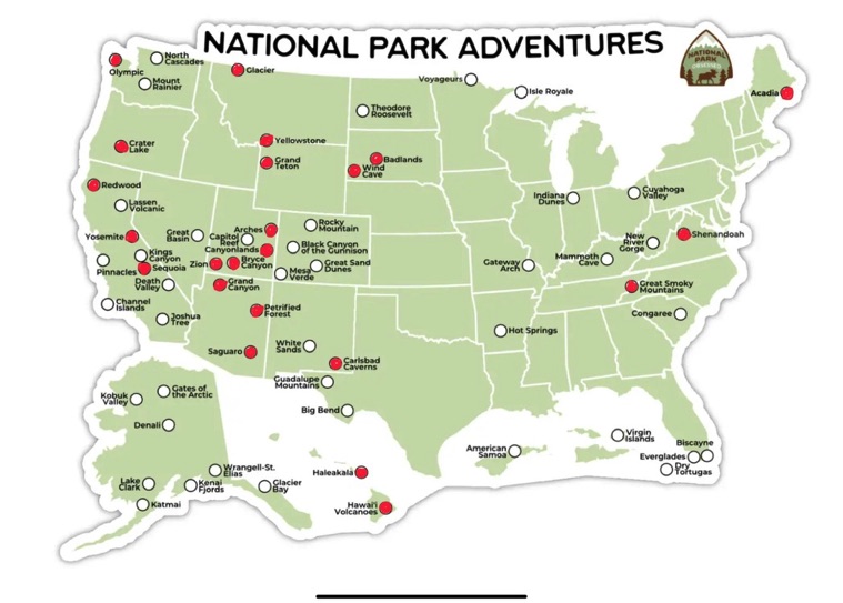 We added Bryce Canyon to our National Park visitation, Red ones are our visits.